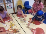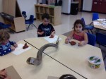 Morah Julie has been introducing us to new media and textures. We have been exploring and creating with charcoal, pastels, and clay. We are painting beads and going on nature walks to collect natural items. We have been doing special Rosh Hashanah art this week. We are exploring the color red and making sweet, creative Rosh Hashanah items. The Pre-K also painted beads and then made their own yads.