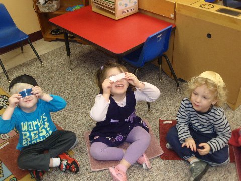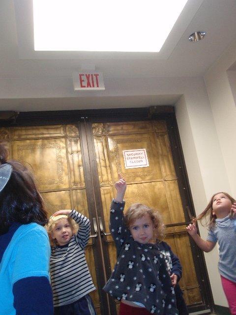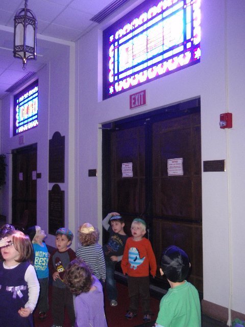 Then we took a walk through the synagogue to find examples of transparent, translucent and opaque things.