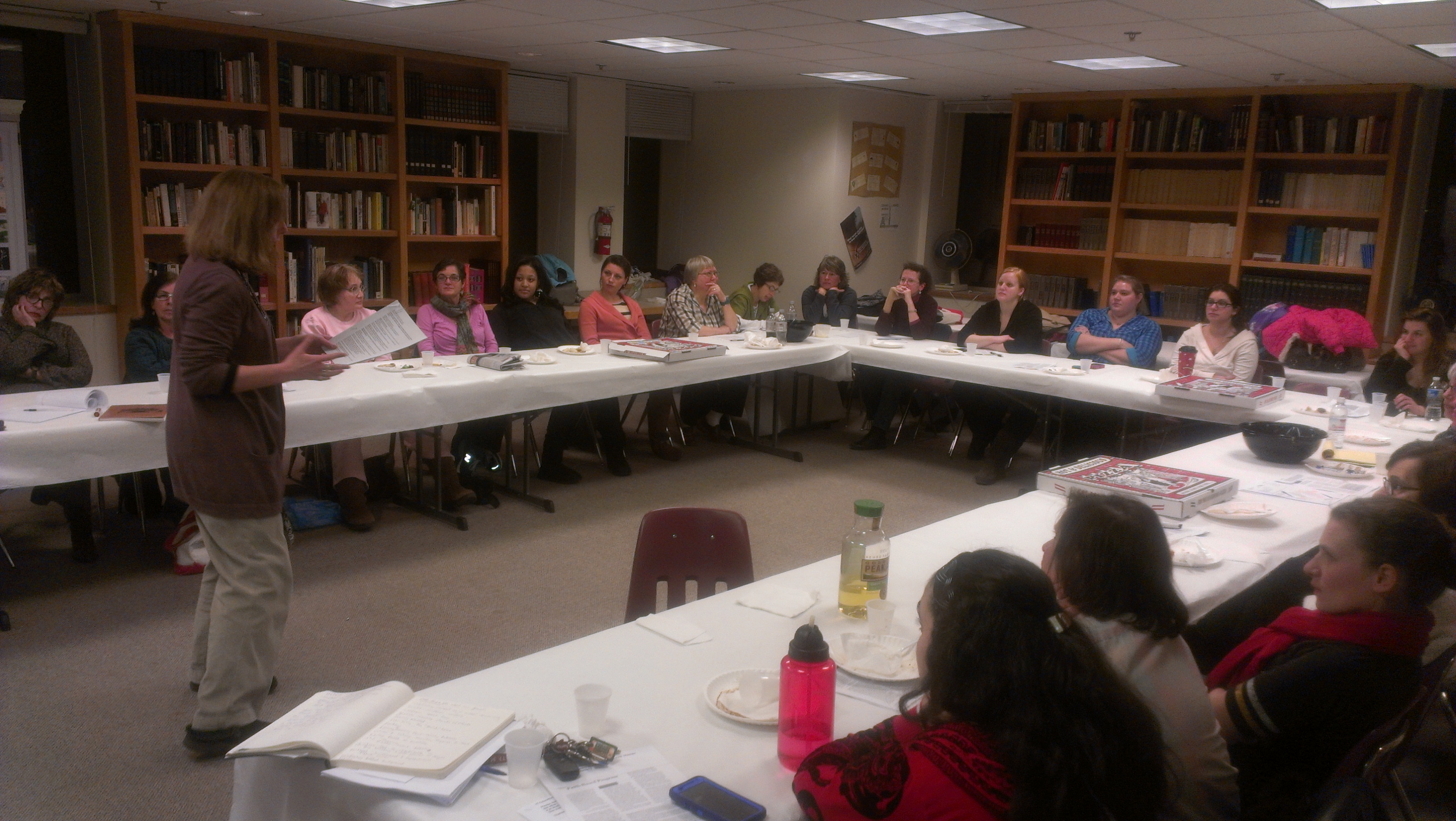 This was a lot of food for thought. Maxine started by having us list the Jewish parts of our curriculum that we loved the most. Our staff of all faiths listed a variety of things: shul, holiday celebrations, tzedakah, mitzvot, the Hebrew language, the list went on and on. We then had to list items that we felt were particular to Judiasm. (including keeping Kosher, wearing kipot, and the Parsha). Finally, our discussion evolved into which of the Jewish values is universal and applicable to all. This list included morals, education, celebrations, miracles, and love.