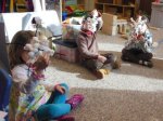 We imagined that we were inside a cloud. It was cold and foggy there. Our dirt floated all around. After a bit, we all settled down in different parts of the cloud.