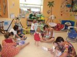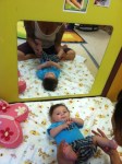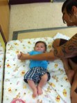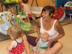 How are we beating the heat here at Beth Shalom Early Learning Center? Infant Yoga. Jennifer Ferris-Glick joined our infant classes on Friday for some yoga. Below she tells us about the benefits of doing yoga with your children. (And see our gallery of images below.)