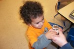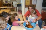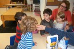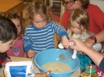 The above picture was posted in the Jewish Chronicle and some people have asked about this recipe. Morah Julie adapted the recipe from a popular Jewish cooking blog (Full Pumpkin Challah Recipe). Below you will find the list of the ingredients and some more images of our two-year-olds working on the challah. We also wanted to share with you some links about Cooking with kids. Cooking is a great activity to do with children. It begins to teach them measurement, reading skills, helps with fine motor skills, and even some basic science!