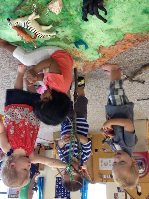 The next week we traveled to South Africa. Hannah who is friends with one of our students came and helped us find South Africa on the map. She also brought the South African flag and some different crafts. We went on an African Safari through our building, made binoculars, and identified animals.