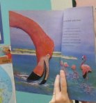 We tried making our arms into flamingo heads. They eat with their beaks upside-down!