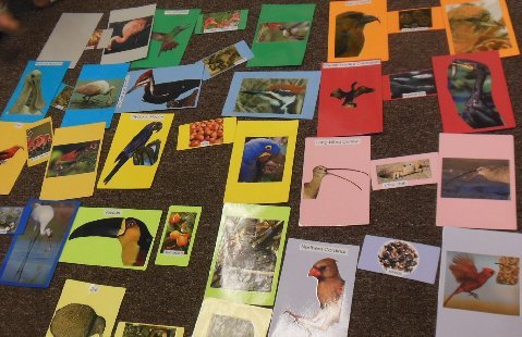 We matched the pictures with the type of food the birds eat.