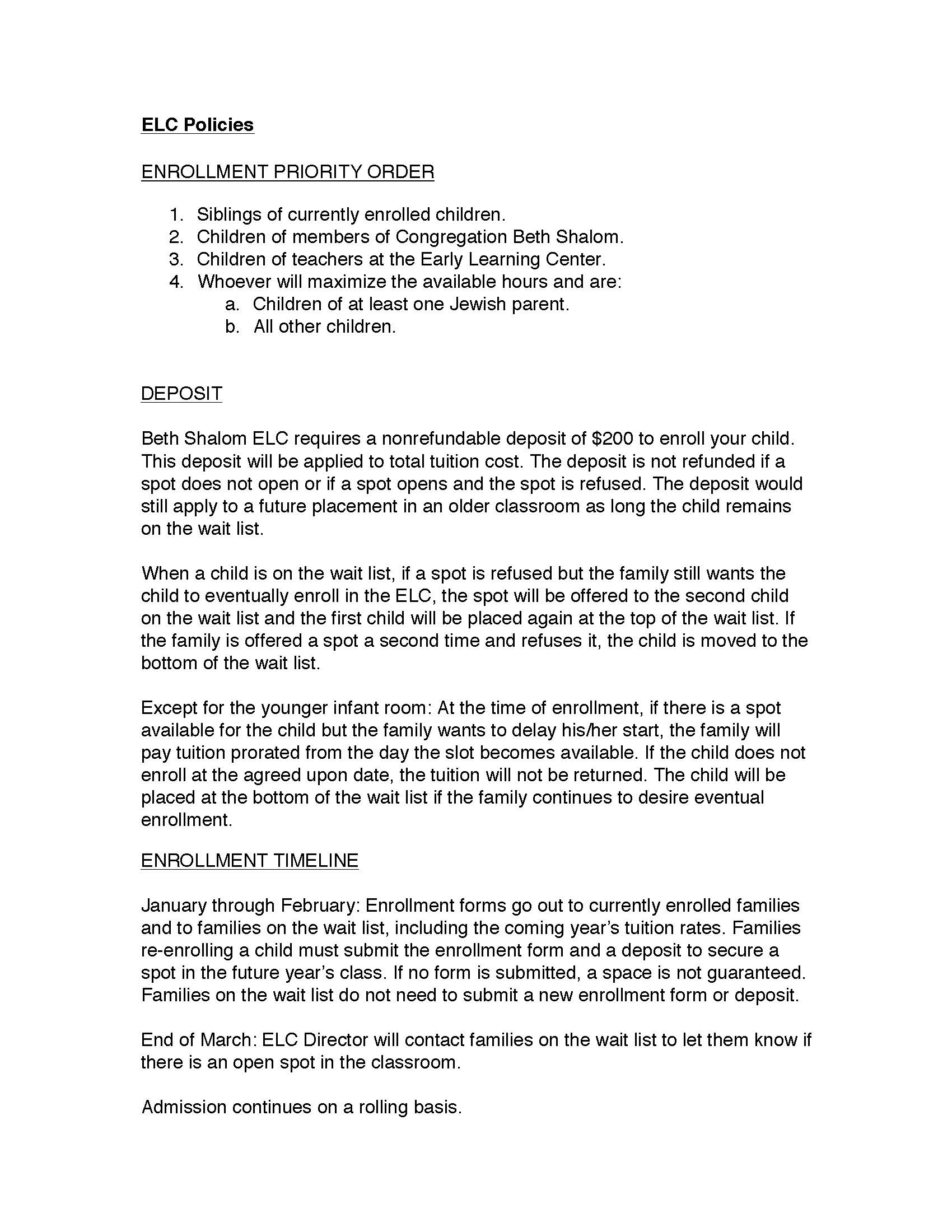 For your reference, our ELC Admission Policy is as Follows: