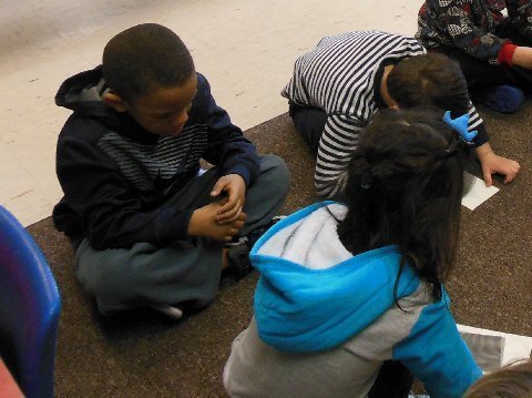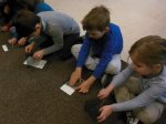 Everyone got a piece of screen. We folded the screen over on itself and moved it around to make our own moiré patterns: