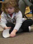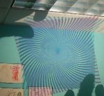 (Note to grown-ups: A moiré pattern appears when two identical patterns overlap. If the two patterns are on semi-transparent materials and are slightly offset, light and dark areas are created, forming a new pattern.) We thought the moving patterns were pretty interesting.