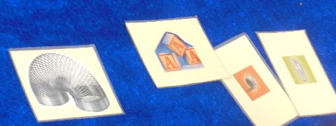 Slinky, blocks, baseball, bottle — which three do you think go together?)