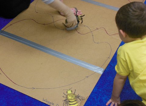 In order to explain where these flowers were, the bee did the Waggle Dance back at the hive.