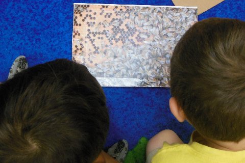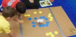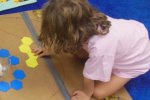 Next, we placed blue hexagons around the cribs. (Note: These hexagons are blue because I only had two colors to work with. Pollen is not actually blue.)