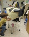First we talked about where milk comes from. We decided on ‘cows.’